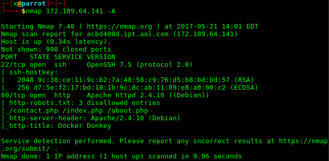 nmap 172.189.64.141 -A komutu ile çıktımıza bakalım.