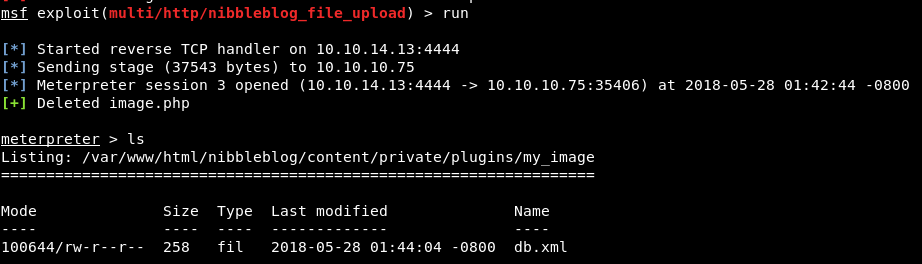 Kodu incelediğimizde admin parolası ile giriş yapıp eklentideki file upload zafiyetinden faydalanarak image.php adında bir PHP dosyası göndererek kod çalıştırmakta. Tabii bunu yaparken parolayı bilmek gerek. Dolayısıyla script yazmaya dahi gerek kalmadan “admin:admin,admin:root,admin:nibbler,admin:nibbles” denemeleri sonucunda parolayı buluyorum.Exploit ettikten sonra yetkimizi alıyoruz.