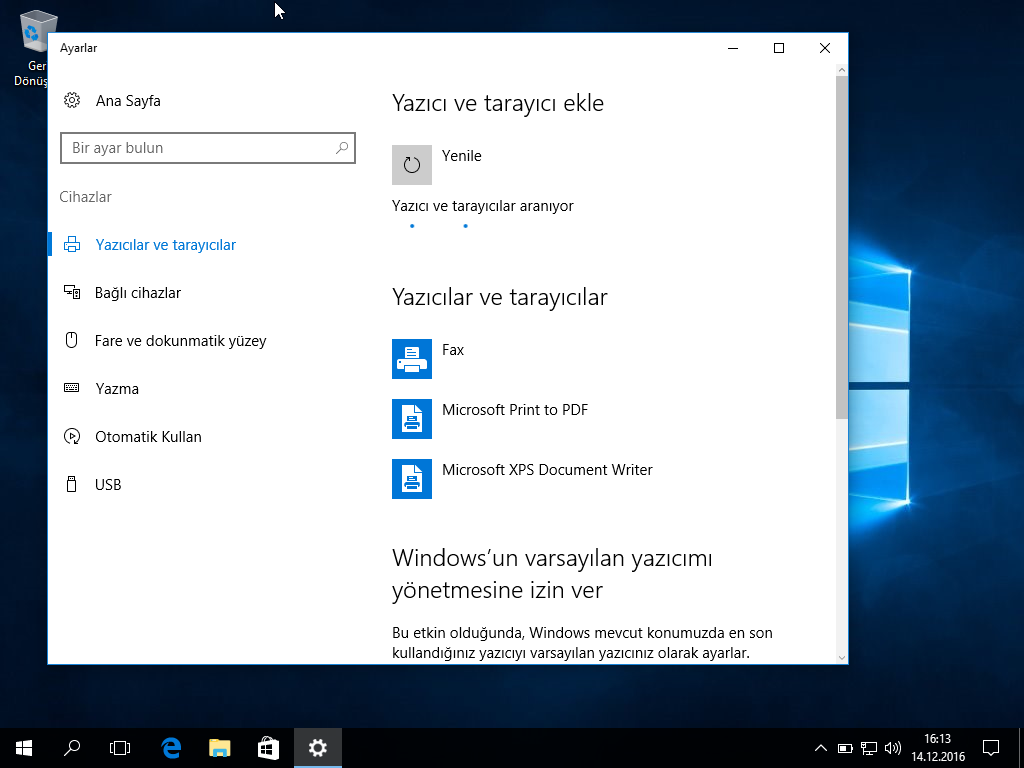 yazıcı ve fakslar bölümüne geldikten sonra ekli olan yazıcılarımız ekranda çıkacaktır.şuan bizde herhangi bir yazıcı ekli olmadığı için listeyi yeniliyoruz eğer yine yazıcımız bulunamazsa yazıcı adıyla, TCP/IP adresi veya ana bilgisayar adresi ile, veya el ile yazıcımızı ekleyebiliriz.