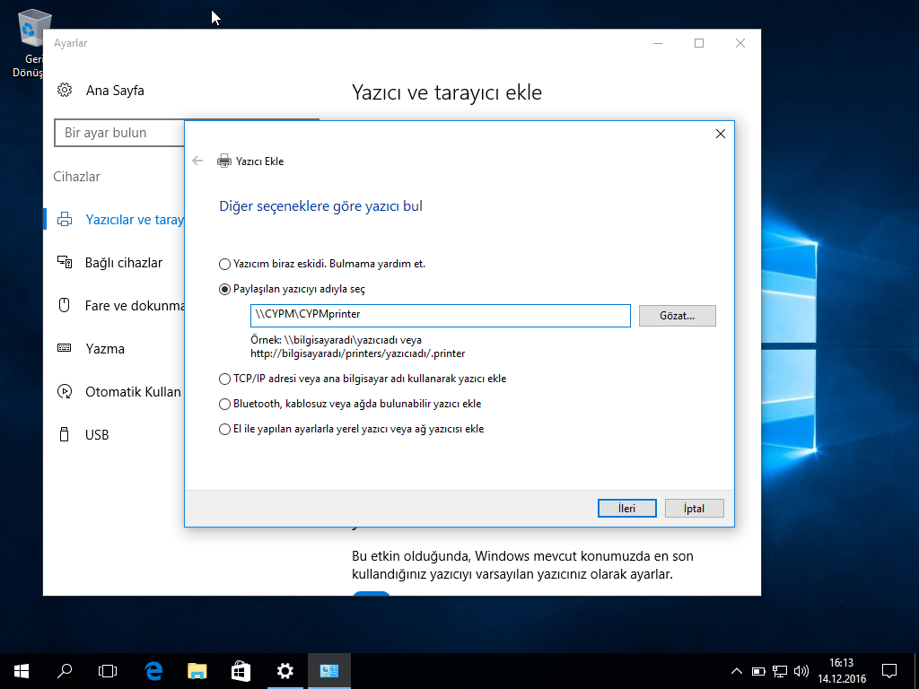 yazıcımızı CYPMprinter adıyla yazıcılarımıza ekledik.