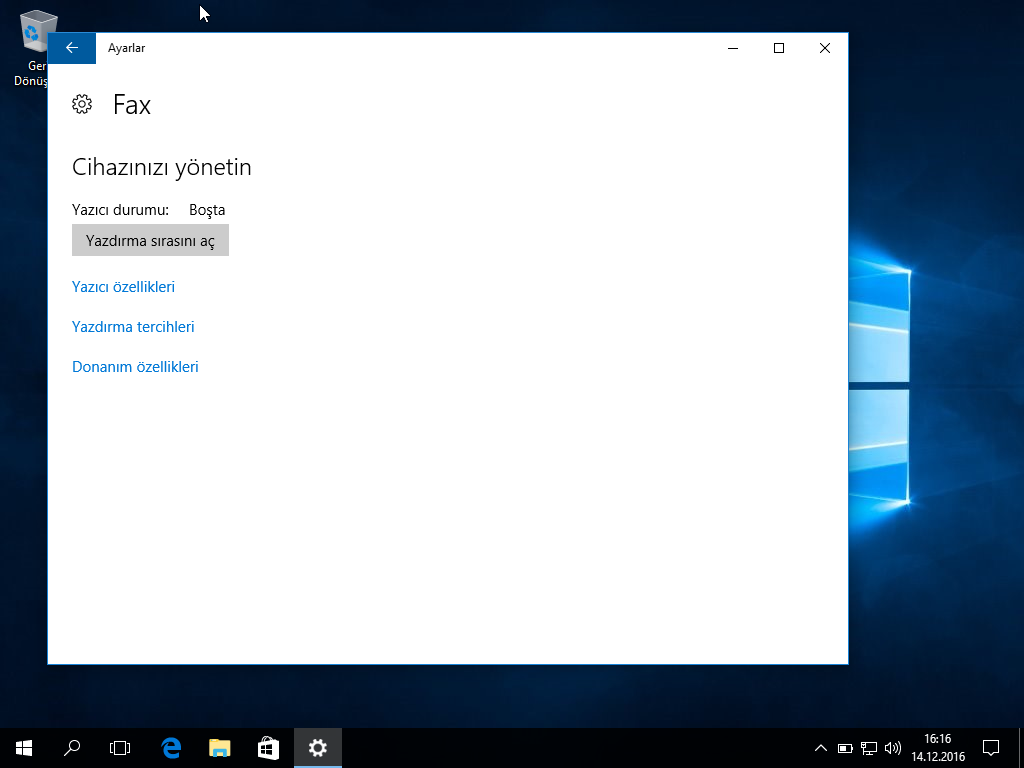 Yazıcı ve faks klasöründe istenilen yazıcıya sağ tıklayıp yönet diyerek bu ekrana ulaştık