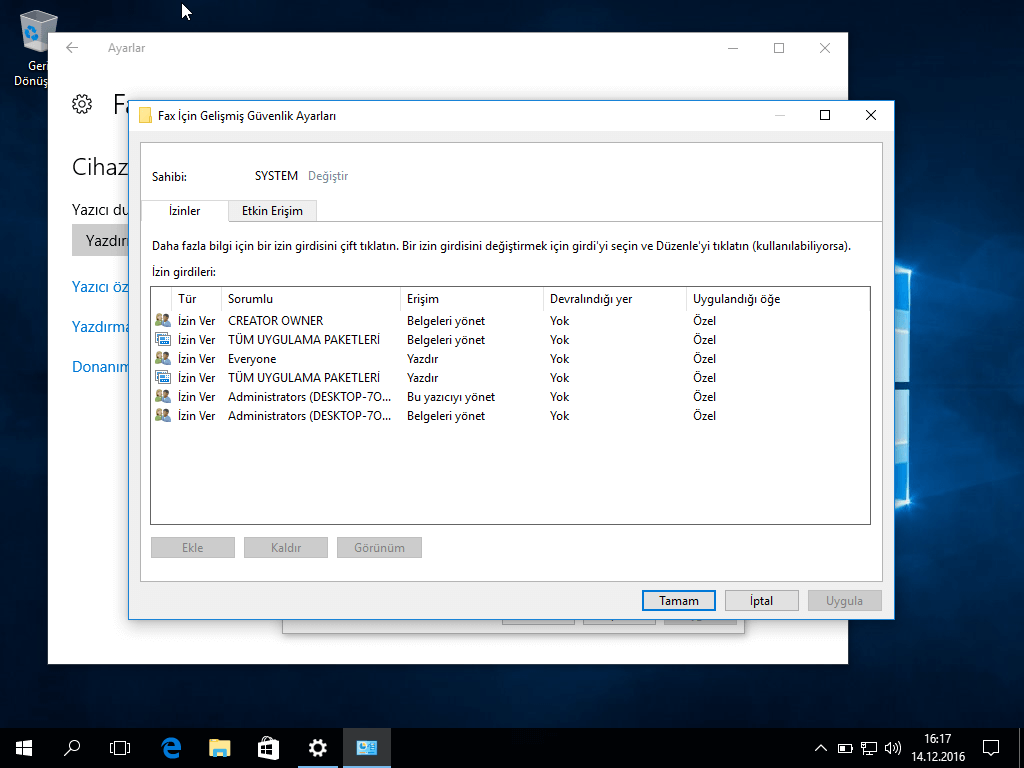Şimdi ise yazıcı ve fakslara istenilen izinleri nasıl vereceğimizi görelim.