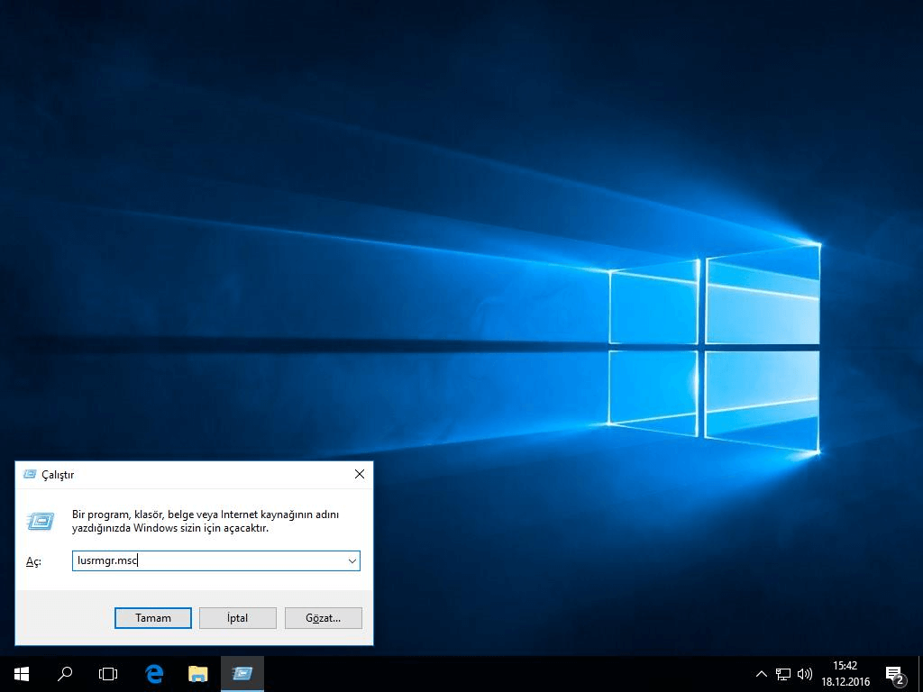 - Öncelikle win+r tuş kombinasyonu ile çalıştır ekranını açıp lusrmgr.msc yazarak Yerel Kullanıcılar ve Gruplar Yöneticisini açıyoruz.